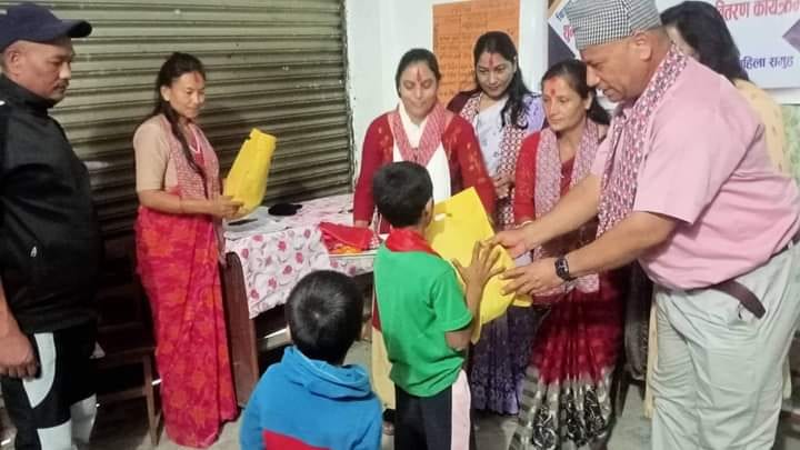 मानव अधिकारका लागि महिला एकल महिला समुह पर्वतको आयोजनामा बिजया दशमी, शुभदिपावली नेपाल सम्बत तथा छट पर्वका अवसरमा शुभकामना आदानप्रदान तथा पोशाक वितरण कार्यक्रम सम्पन्न भएको छ ।