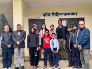 पर्वत वेलफेयर सोसाइटी युकेका अध्यक्ष अप्सरा गुरुङले कुश्माको शिवालय माविमा रहेको दृष्टिविहिन छत्रवासको अवलोकन गरेकि छन ।