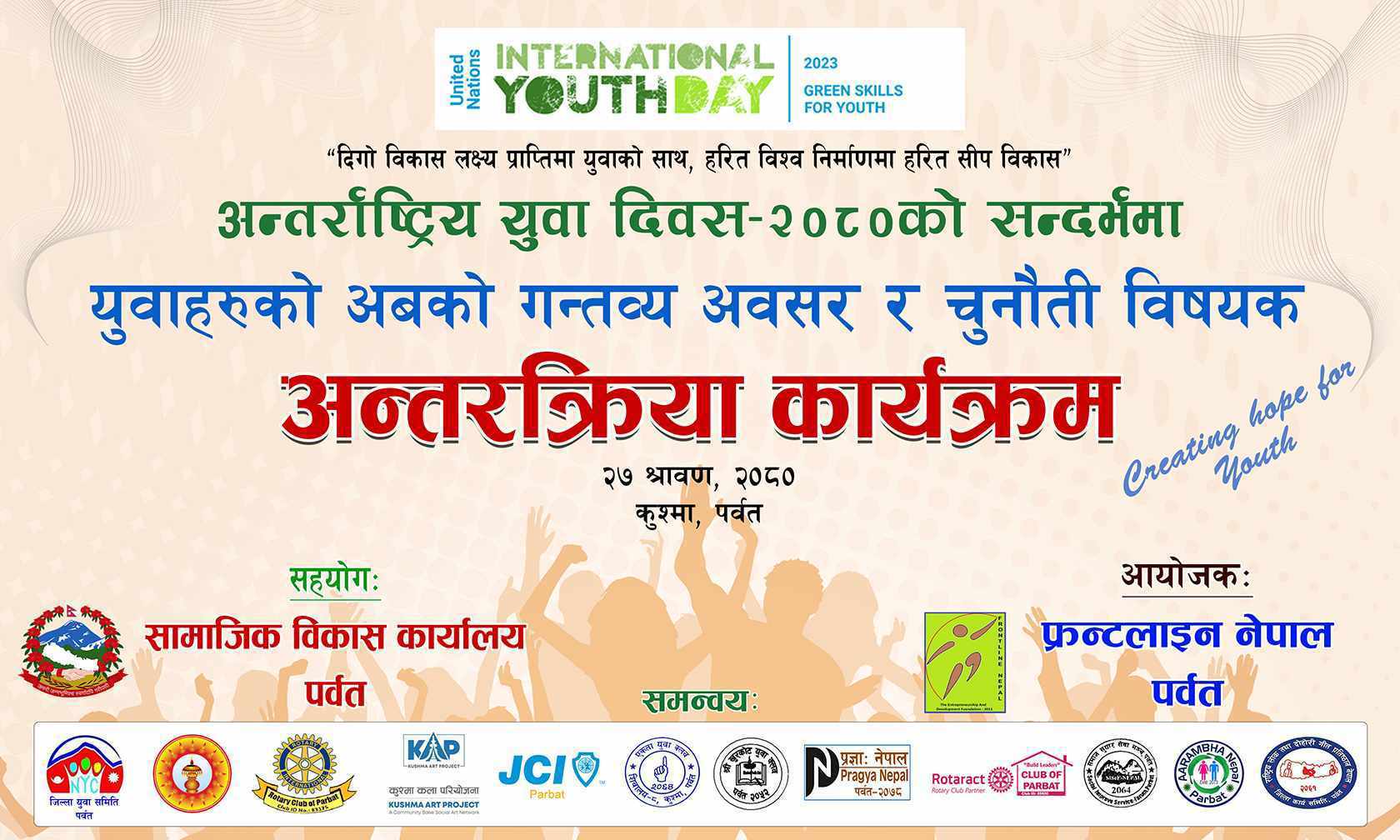 अन्तर्राष्ट्रिय युवा दिवस २०८० का अवसरमा पर्वतमा आयोजित अन्तरक्रिया कार्यक्रममा प्रस्तुत भएको कार्यपत्र जस्ताको त्यस्तै पढौं ।