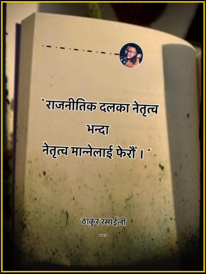 अझै स्पष्ट पारौं – तपाईं कुन गाउँ कुन जिल्लामा बस्नुहुन्छ, तपाईं कुन दलमा आवद्ध हुनुहुन्छ ? तपाईंको जिल्लामा तपाईंले मान्ने वा ठुला भनिने नेता कुन हुन ? र ति नेताले माथि कसलाई मान्छन ? नेताले दाँयावाँया नहेरी नेतृत्वलाई ढोगभेटी चढाइहाल्छन कि समाज र जनताबारे सोचेर केहि बोल्ने आँट गर्छन । यत्ति कुरा बुझेर भुँइतहबाटै समर्थन सहयोग गर्ने वा प्रश्न विरोध गर्न लाग्नुपर्छ । हामीले हाम्रो समर्थन वा मतबाट कसैलाई माथि पठाउनु भनेको हामीले निर्वाचनमा वारेस पठाए जस्तै हो । हामीले वारेस पठाउनु भनेको उसले चाहेको ठाउँमा मत दिँदा आफ्नो मन्जुरी छ भन्नु हो । त्यसैले हामीले सहि नेतृत्व चुन्नुपर्छ । ताकि उसले पनि देशको लागि सही नेतृत्व चुन्ने सामर्थ्य राखोस । जेनजी विद्रोह र त्यसपछि देखिने दृश्य र घटनाले यतातिर गहिरोगरी सोच्ने बनाएको छ । र सोही अनुसार लाग्न शन्दे पेश गरेको छ ।